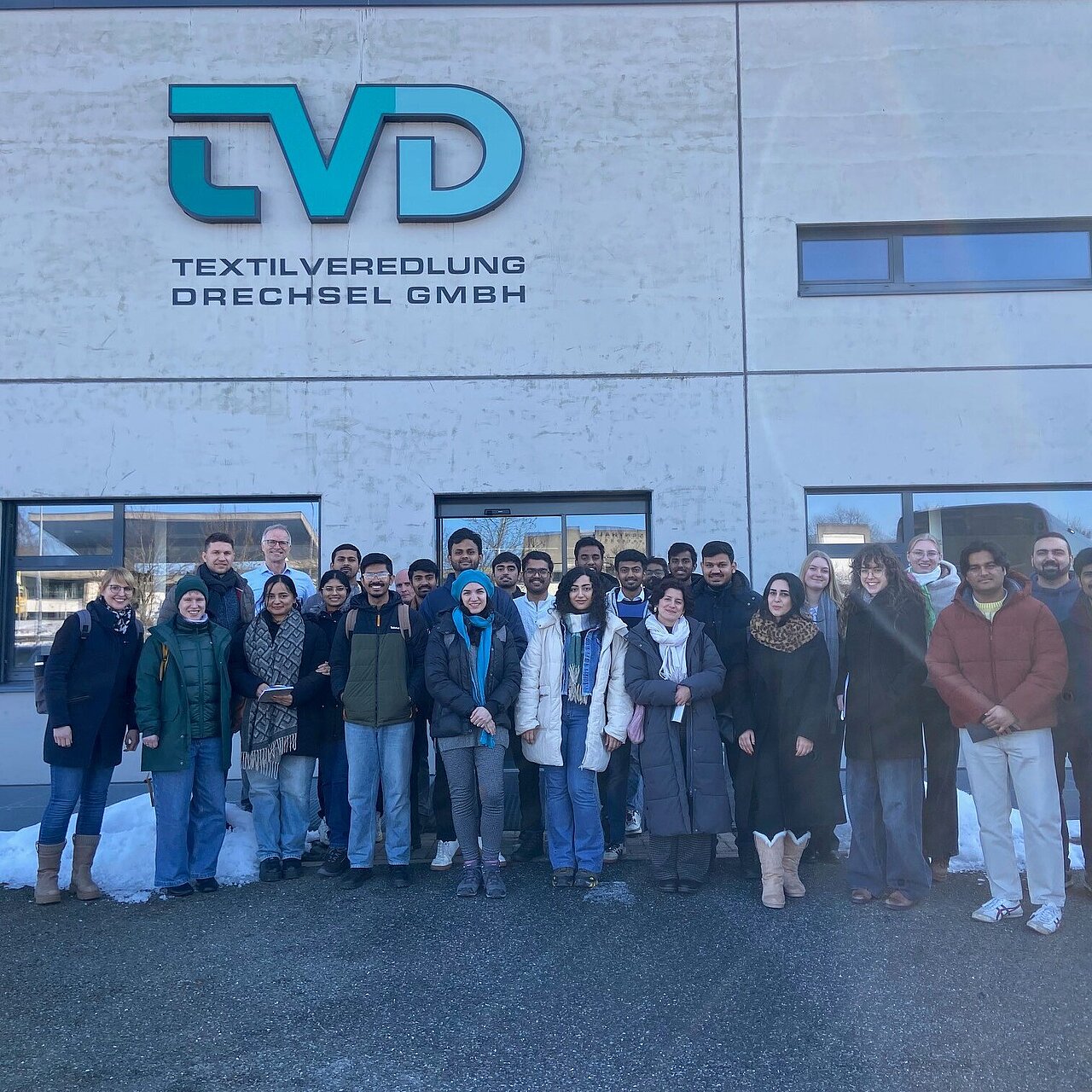 Verbraucherinnen und Verbraucher sehen häufig nur das Endergebnis – ein Kleidungsstück, das gefällt oder ein Sonnenschutzrollo, dass seine Funktion erfüllt. Unsere Studierenden aus Design und Ingenieurwissenschaften zeigten sich beeindruckt, die vielfältigen Prozesse der Textilveredlung vor Ort zu erleben. Nicht nur die kreativen und individuellen Lösungen, um die textilen Materialen entsprechend der Kundenwünsche und Anforderungen auszurüsten, sondern auch die Maßnahmen, um Arbeitsschutz und Umweltschutz sicherzustellen, gaben den Studierenden einen nachhaltigen Eindruck. Beim Rundgang durch den Betrieb und der anschließenden Zusammenkunft, konnten viele Fragen beantwortet werden, bevor es zurück zum Campus nach Münchberg ging. Wir bedanken uns für den herzlichen Empfang in Selb und die Einblicke in die Produktion.